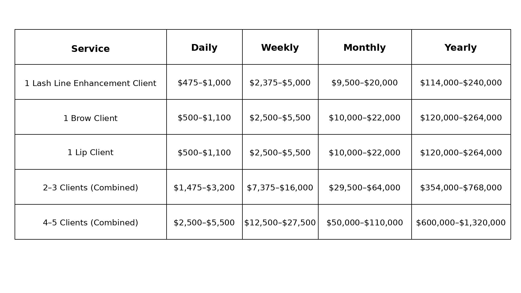 These numbers reflect real-world pricing and attainable client volume based on today’s PMU market. Whether you’re expanding your current services or starting fresh, permanent makeup offers the opportunity to build a scalable, high-income business.